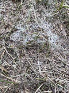 - Matted down grass that looks webbed together.